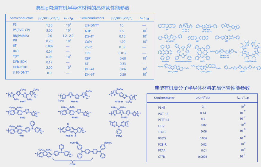 1.发展高迁移率、结构稳定的有机半导体材料(特别是n沟道材料)。